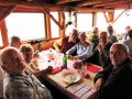 Wettermässig zeigte sich der Himmel am Vierwaldstätter-See durchzogen aber trocken. So gegen 10:30 Uhr bestiegen wir unseren Bus und verliessen Küssnacht in Richtung Seeboden-Alp. Auf der steilen und kurvenreichen schmalen Strasse, fuhr der Reise-Car in zwangsläufig langsamer Fahrt auf die Seeboden-Alp. Das Ausflugsziel lag auf einer Höhe von 1040 Meter ü/M. Oben angekommen begann der Fussmarsch von dem Carparkplatz nach der “Ruodisegg Alpwirtschaft“, welcher rund eine halbe Stunde in Anspruch nahm. Die Berggängigeren nahmen den Wanderweg auf der Höhe, mit Blick hinunter über den Vierwaldstätter-See und Zuger-See. Der weitere Teil der Wandergruppe zog den ebenen und gemütlicheren Weg vor. Gemeinsam trafen wir dann in der Alpwirtschaft “Ruodisegg“, ein. In dem Panorama–Stübli, mit wunderschönem Ausblick über den Vierwaldstätter-See bis hin nach Luzern, waren die Tische bereits gedeckt, und die wanderfreudigen, konnten sich gemütlich niederlassen.