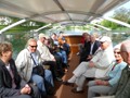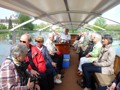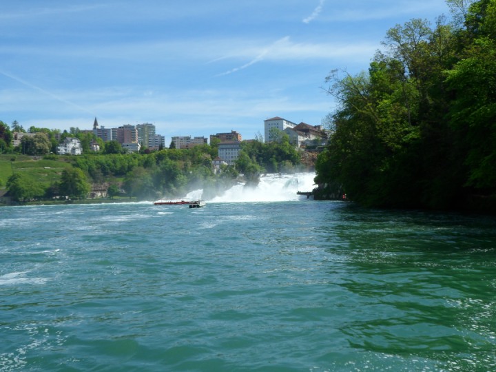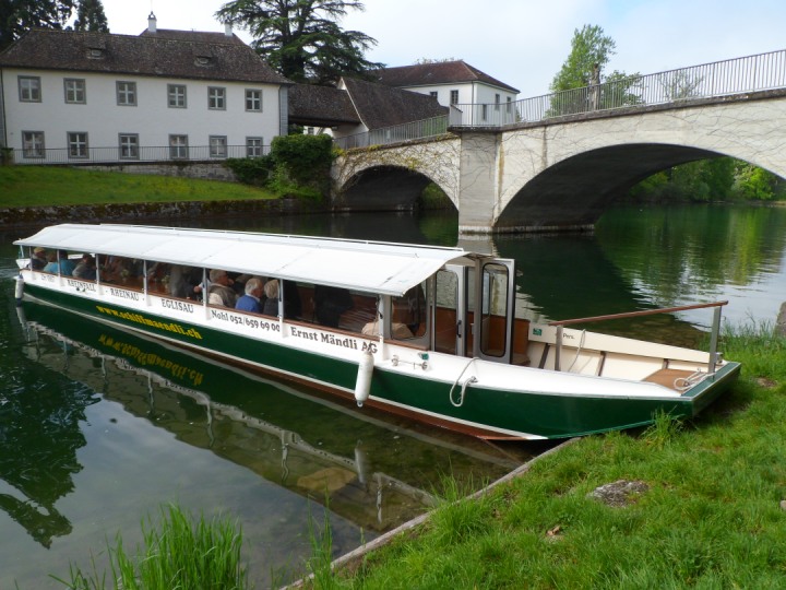 Pünktlich in der Herrgottsfrühe fanden sich die unentwegten Ausflugsgäste bei der Gartenstrasse ein. Um 0645 Uhr nachdem die sechzig Personen einen Platz im Car eingenommen hatten, fuhr der Doppelstock-Bus mit Thomas als unseren Chauffeur in Richtung Ostschweiz los. Die Fahrt führte lediglich ein kurzes Teilstück auf der Autobahn danach aber auf der Kantonsstrasse via Eiken – Laufenburg nach Koblenz-Gippingen. Dieses Teilstück dem Rhein entlang erlebten wir in dichtem Nebel. Die Stimmung unter den Teilnehmern im Car zu dieser Morgenzeit war noch etwas schläfrig und ruhig. Keine Stunde und wir trafen in Gippingen ein wo im Restaurant „Kreuz“ der Kaffee mit Gipfeli uns erwartete. Jetzt war auch der letzte „Morgenmu…“ in Stimmung gekommen und bereits um 0835 Uhr erfolgte die Weiterfahrt zum Kloster Rheinau wo die erste Ueberraschung uns erwartete. Die Organisation scheuten weder Müh noch Kosten. Nein es folgte das Umsteigen von dem Car auf zwei Langboote. Diese Flussfahrt führte von Rheinau aus nach dem Rheinfall. Unterwegs wurde ein Apero serviert und wir konnten die Fahrt auf dem Seitenarm des Rheins bei schönstem Sonnenschein einfach nur geniessen. Erna und René - ich kann nur sagen - die Ueberraschung war Euch gelungen und sämtliche Kollegen waren nur happi sich an der wunderschönen vorbeiziehenden Waldlandschaft zu erfreuen. Als krönenden Abschluss dieser Flussfahrt glitten die beiden Langboote zum Rheinfall in die Gischt, wo die Wucht und die Kraft der über die Felsen fallenden Wassermassen, eindrücklich erlebt werden konnten.