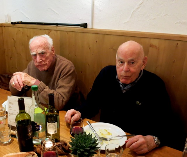Wegen des nassen und garstigen Wetters, fuhren wir von Basel direkt und ohne Zwischenhalt, nach Schafis. Dort angelangt wurden wir von Frau Lisbeth Andrey und ihren Mitarbeitenden Frauen, herzlich empfangen. Und schon bald, wurden die herrlichen Weiss- und Rotweine von der hauseigenen Kelterei, serviert. Danach folgte natürlich das Menü –Treber-Wurst mit Kartoffel- und gemischter Salat. Die heisse Saucisson wurde durch die Chefin selbst, fachgerecht in Wursttranchen geschnitten, und an die hungrige Ausflugs-Gesellschaft, ausgeteilt. Es wurde still in der Kelterei-Stube, und alle waren mit dem Tafeln à discrétion des herrlichen Essens, beschäftigt. Abgerundet wurde das gute Essen mit einem Kaffee – Marc, und einem der unterschiedlich angebotenen Dessert.