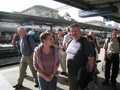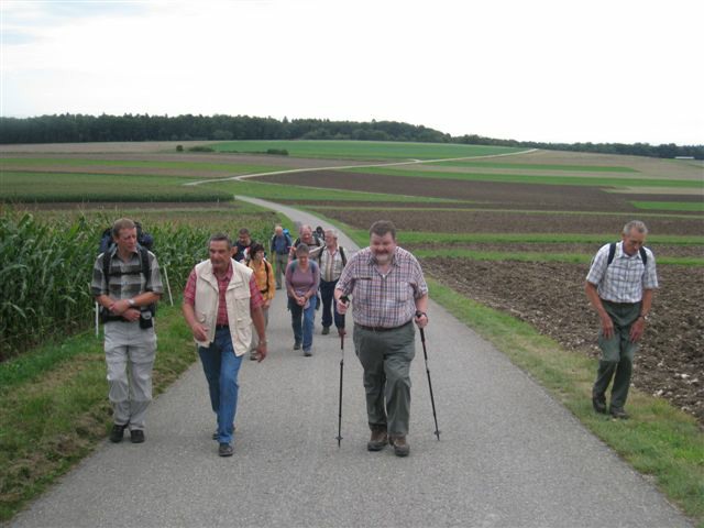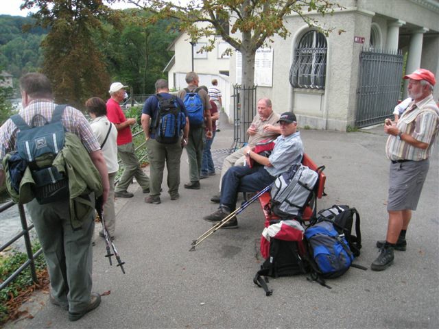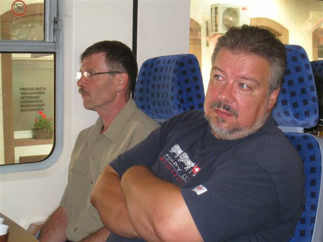 Am Freitag, 05. September 2008, pünktlich um 08.15 Uhr, trafen sich wiederum 13 wohlgelaunte und glückliche Wanderinnen und Wanderer des Polizei-Turnvereins und der Männerriege Basel-Stadt, mit dem Bärenführer und Organisator der PTV-Bergwanderung 2008, Geiser René, diesmal im Badischen Bahnhof vor dem Coop Pronto-Laden. Damit waren wir eine Person weniger als letztes Jahr. Obwohl der Anlass jetzt schon zum zweiten Mal zwischen dem Polizeiturnverein und der Männerriege zusammengelegt worden ist und erst noch zwei Wochen später angesetzt wurde, haben sich nicht mehr Kolleginnen und Kollegen für die Bergwanderung 2008 angemeldet. Auch dieses Jahr konnten Bethli und Bruno Richner aus gesundheitlichen Gründen nicht teilnehmen. Vor allem Bethli musste sich vor kurzem einer Knieoperation unterziehen. Wir alle wünschen Dir Bethli auf diesem Weg gute Besserung. Auch Stephan und Dorli konnten dieses Jahr nicht dabei sein. Sie waren erst vor kurzem aus den Ferien ihrer Heimat Kroatien zurückgekehrt. Nach längerer Pause konnten wir den topfiten Pensionär (seit 13 Jahren) Heiz Ruedi und den Neupensionär Vaihinger Edi wieder einmal in unseren Reihen begrüssen. Als ich vor dem Pronto-Laden ankam, drücke mir Geiser René einen grossen Sack mit Gipfeli in die Hand. Da dachte ich mir, dass fängt ja schon super an. Dann schickte er uns (Alex, Esther, Beni und mich) auf den Bahnsteig 7, um nach der Einfahrt des Zuges einen Teil für uns zu besetzen, weil noch nicht alle am vereinbarten Treffpunkt sich eingefunden hatten. Pünktlich um 08.43 Uhr fuhr der Zug IRE 3103 (ein Triebwagen mit nur einem angehängten Wagen) via Rheinfelden, Bad Säckingen, Laufenburg, Waldshut-Tiengen, Erzingen nach Schaffhausen. Das Endziel dieses Zuges war Ulm. Von Basel nach Schaffhausen durch Deutschland zu fahren, war wieder einmal ein genialer Schachzug unseres Bärenführers René, denn die Fahrtzeit betrug nur genau eine Stunde. Wären wir durch die Schweiz nach Schaffhausen gefahren, hätte die Fahrtzeit zwischen 1 ¾ bis 2 ¼ Stunden betragen mit bis zu zweimaligem Umsteigen. Was nicht so gut war, dass die Zugskoposition nur so eine kleine Kapazität hatte. Gottseidank konnten wir schon in Basel einsteigen und jede/r hatte noch einen Sitzplatz ergattern können. Beim ersten Halt in Rheinfelden konnte man nur noch einen Stehplatz buchen. Unterwegs im Zug packte Geiser René aus seinem grossen Bergrucksack dann zwei Kannen mit heissem Kaffee aus. Auch an die Zutaten wie Milch, Zucker und Servietten hatte er gedacht. Er ist eben ein guter, nein ein sauguter Organisator und so konnten wir uns mit Kaffee und Gipfeli stärken. Lieber René von uns allen ein herzliches Dankeschön für diese Super-Aktion von Dir. Du überrascht uns halt jedes Jahr immer wieder mit etwas neuem.