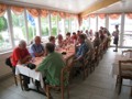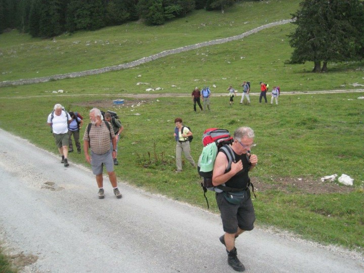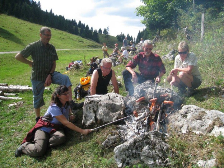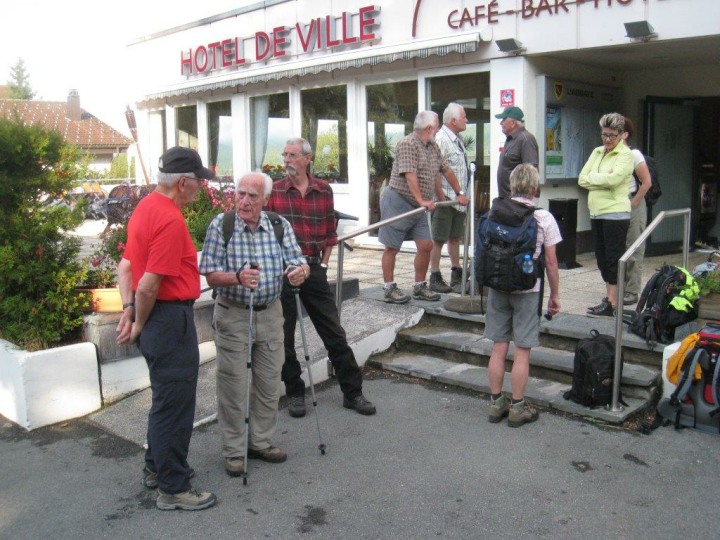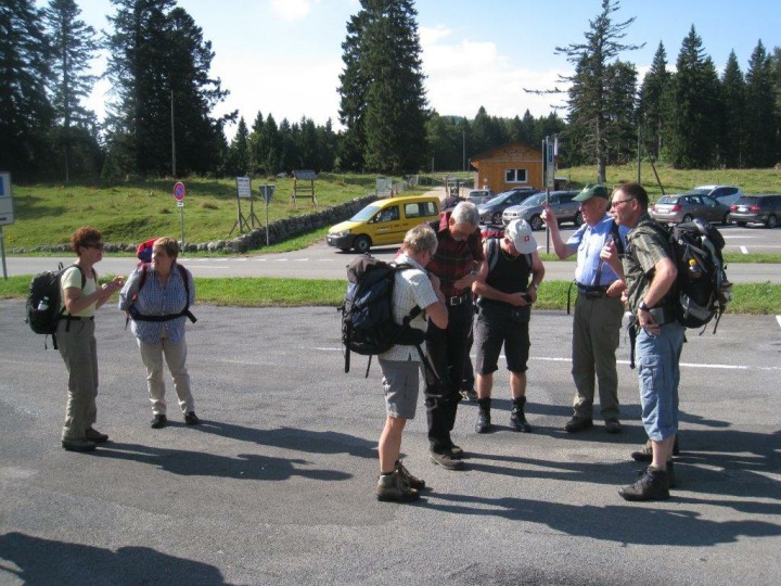 Dies war eine Extrafahrt, da diese Strecke mit dem Postauto nur am Samstag und Sonntag bedient wird. Die Extrakosten wurden vom Polizei-Turnverein übernommen. An dieser Stelle ein herzliches Dankeschön. Für 5 Kolleginnen und Kollegen, welche nicht mehr so gut zu Fuss sind, ging die Postautofahrt weiter bis nach Le Pont. Die übrigen 14 kehrten im Hotel-Restaurant Mollendruz auf der Terrasse ein. Bei Sonnenschein genehmigten wir uns das erste Getränk. Zwischendurch versuchten wir die von Huber Joe aus Indien mitgebrachten Spielsachen aus Holz zu entschlüsseln, was uns nicht immer auf Anhieb gelang. Um 1130 Uhr marschierten wir ab und über Wiesen und Wälder gelangten wir zu einem lauschigen Picknickplatz. Unterwegs sammelten Schmid Alex, Stäger Walti und Clément Philippe Holz für das Feuer und trugen dieses über eine beachtliche Strecke mit sich. Beim Picknickplatz kamen wir um 1230 Uhr an. Die Tube Senf hat diesmal Käsermann Beni im Coop gepostet. Nachdem wir uns während einer Stunde mit Chlöpfer, Salami, Schinken, Tomaten, Eier, Bier und Wein etc. verköstigt hatten, ging die Wanderung um 1330 Uhr weiter. Unterwegs berichtet Geiser René, dass wir nicht wie geplant nach Le Sentier laufen und dort im Hotel de Ville einchecken werden. Irgend jemand vom Hotel de Ville in La Sentier hat die Reservation, welche Geiser René im Beisein von Käsermann Beni aufgegeben hat „verbockt“. Glücklicherweise ist der Besitzer dieses Hotels auch Eigentümer vom gleichen Hotel de Ville in L’Abbaye. Unterwegs stellte sich die Frage ob wir später ein Uhrenmuseum besuchen werden, oder unterwegs in das Restaurant „Buvette des Croisettes“ einkehren möchten. Die Abstimmung verlief einstimmig, sodass wir im erwähnten Restaurant an zwei grossen Holztischen Platz nahmen und uns Kaffee, Most, Bier, oder ein Dessert genehmigten. Um 1510 Uhr brachen wir gestärkt wieder auf und von nun an ging es nur noch bergab (landschaftlich und geographisch natürlich). Um 1615 Uhr kamen wir im Hotel de Ville in L’Abbaye (1344 m.ü.M.) an. Die übrigen 5 Kolleginnen und Kollegen erwarteten uns schon auf der Terrasse. Sie wurden ja mit dem Postauto nach Le Pont gefahren. Von da an liefen sie am Seeufer entlang bis zum Hotel. Das Hotel liegt unmittelbar am Lac de Joux. Dieser See ist die grösste Wasserfläche im ganzen Juramassiv. Während sich Geiser René um die Zimmereinteilung kümmerte, packte Joe die Jasskarten aus und Alex, Claudia und Philippe waren sofort zu begeistern. Die übrigen genehmigten sich auf der Terrasse mit Blick auf den Lac de Joux einen Apéro. Nachdem Geiser René die Zimmeraufteilung vorgenommen hatte und berichtete, dass wir um 1900 Uhr zum Nachtessen antraben müssen, begaben wir uns gestaffelt ins Zimmer um uns frisch zu machen. Ja frisch wurde es tatsächlich, weil es nur noch am Anfang ein bisschen warmes Wasser gab. Nachher war es wie früher im Militär. Es war nur noch kaltes Wasser vorhanden. Um 1900 Uhr versammelten wir uns im schönen Speisesaal des Hotels mit wiederum Blick einem tollen Abendblick auf den Lax de Joux. Was nachher kam, war leider schade. Wir mussten doch geschlagene 40 Minuten darauf warten bis die Bestellung der Getränke aufgenommen wurden. Nachher ging es dann Schlag auf Schlag. Als „Gruss aus der Küche“ wurden uns kleine Crevetten serviert, gefolgt von einem grünen Salat mit grösseren Crevetten. Als Hauptspeise gab es dann Felchenfilets mit Pommes-Frites, Reis, oder Salzkartoffeln. Der Service wurde mit dem servieren der Getränke dann auch besser. Auch die Qualität der Speisen war meiner Meinung nach gut. Unglücklich war ein bisschen, dass wir 3 Mal hintereinander Fisch hatten. Als Abschluss des Menüs, wurden als Dessert dünn geschnittene Ananassscheiben mit Rahm serviert. Nach dem Nachtessen verkündete Geiser René, dass wir um 0800 Uhr zum Morgenessen antraben müssen. Während die Jassgruppe nochmals einen Jass klopfte, gingen die ersten zu Bett, während sich der Rest noch einen Schlummertrunk genehmigte. Am Samstag, 07. September 2013, um 0800 Uhr, versammelten wir uns zum Morgenessen im Speisesaal. Über Nacht hatte es zum Teil gewittert. Ich habe davon nichts mitgenommen, weil ich offenbar tief geschlafen habe. Nach dem Nachtessen und Abgabe der Zimmerschlüssel, trafen wir uns vor dem Hotel und liefen um 0900 Uhr ab.