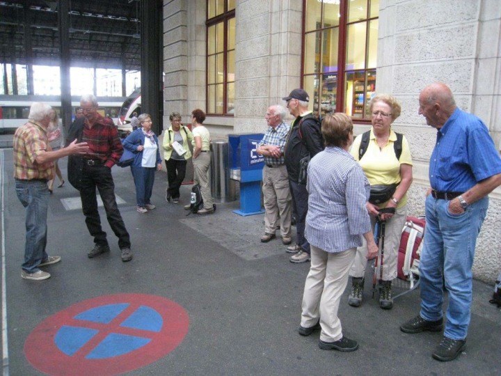 Da wir dort über eine Stunde Aufenthalt hatten, begaben sich einige in die Innenstadt, andere wiederum kehrten im Bahnhofsrestaurant ein. Um 1804 Uhr bestiegen wir den Zug ohne Halt nach Basel. Auf den reservierten Plätzen sass ein Mann, aber auch dieser begriff nach der Intervension von Geiser René, dass er verschwinden soll. Pünktlich um 1953 Uhr trafen wir am Ausgangspunkt vom Freitag, nämlich in Basel ein. Hei war das wieder eine gelungene PTV-Bergwanderung. Diese wurde wieder einmal mehr von Geiser Rene perfekt organisiert. Am Sonntag konnte René dann seinen 81. Geburtstag feiern. Dazu nachträglich von uns allen herzliche Glückwünsche, verbunden mit hoffentlich weiter so guter Gesundheit. René hat uns während der diesjährigen Bergwanderung verraten, dass er im nächsten Jahr seine letzte Bergwanderung organisieren wird. Wir werden in die Region des Klausenpasses gehen und dort auf dem „Güggeliweg“ wandern. Wo immer und was immer auch das ist, ich lass mich überraschen. Nicht vergessen dürfen wir auch Käsermann Beni, hatte er doch glaublich in den letzten vier Jahren René bei der Organisation unterstützt. Beni, oder von mir manchmal „Cheesman“ genannt, auch Dir vielen Dank für die Mitorganisation.