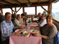 Das Mittagessen wurde als Selbstbedienungs-Buffet im Panorama-Stübli aufgebaut und serviert. Eine Grillauswahl bestand aus Schweinssteak, Pouletbrust und div. grillierten Würsten. Dazu wurden neun verschiedene Salate serviert. Bei den Desserts, wie etwa der Zuger Kirschtorte oder einer Meringue mit Rahm, blieben keine Wünsche offen. Der anschliessende Kaffee in den verschiedenen bekannten Innerschweizer Varianten, konnte auch ausserhalb in der Gartenwirtschaft, inhaliert werden. Es ging je länger je lustiger einher und die Stimmung war herrlich befreiend. Die Bauersleute und gleichzeitige Wirte der Alpwirtschaft - Mutter und Tochter Schuler, sowie der Mittarbeiter, Johann als der Grilleuer -, gaben sich alle Mühe, uns einen guten Service zu bieten, was ihnen auch umfassend gelang. Während dem sich die Einen nach dem Dessert und einem Kaffee nach Draussen in die schöne Alp-Landschaft zog, genoss Walter Bi…. einen gemütlichen Mittagsschlaf auf einer Bank im Panorama-Stübli. Gut Schnarchchchch!