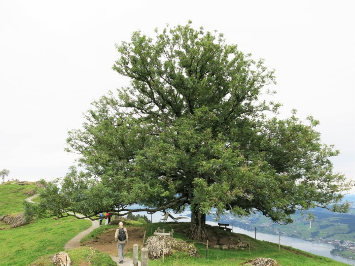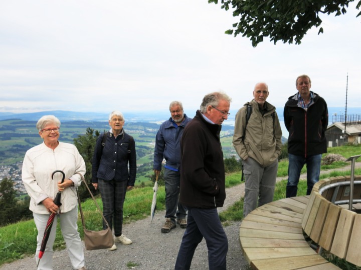 Wettermässig zeigte sich der Himmel am Vierwaldstätter-See durchzogen aber trocken. So gegen 10:30 Uhr bestiegen wir unseren Bus und verliessen Küssnacht in Richtung Seeboden-Alp. Auf der steilen und kurvenreichen schmalen Strasse, fuhr der Reise-Car in zwangsläufig langsamer Fahrt auf die Seeboden-Alp. Das Ausflugsziel lag auf einer Höhe von 1040 Meter ü/M. Oben angekommen begann der Fussmarsch von dem Carparkplatz nach der “Ruodisegg Alpwirtschaft“, welcher rund eine halbe Stunde in Anspruch nahm. Die Berggängigeren nahmen den Wanderweg auf der Höhe, mit Blick hinunter über den Vierwaldstätter-See und Zuger-See. Der weitere Teil der Wandergruppe zog den ebenen und gemütlicheren Weg vor. Gemeinsam trafen wir dann in der Alpwirtschaft “Ruodisegg“, ein. In dem Panorama–Stübli, mit wunderschönem Ausblick über den Vierwaldstätter-See bis hin nach Luzern, waren die Tische bereits gedeckt, und die wanderfreudigen, konnten sich gemütlich niederlassen.