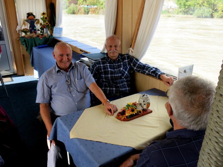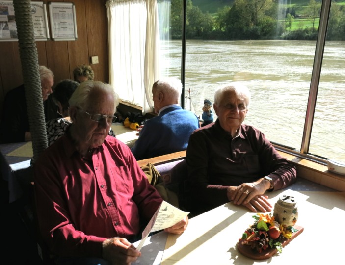 Um 14.30 Uhr bestiegen wir das bereitstehende Personenschiff, mit einer Personenkapazität, die gerade unsere Personengruppe, aufnehmen konnte. Vor uns lag eine gemütliche, zweistündige Flussfahrt Rheinaufwärts und zurück. Diese Fahrt wurde bei einem Glas Wein, mit grosser Zufriedenheit genossen, bis auch diese Zeit vorbei zog und die Heimreise mit dem Zuge wieder angetreten werden musste.