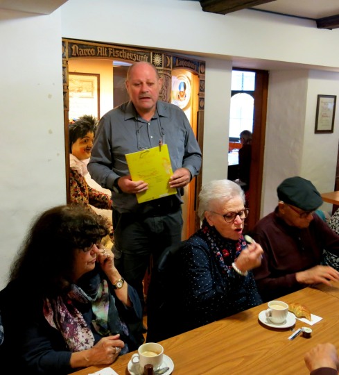 Im schmucken, 1609 erbauten Haus, mitten in der Altstadt auf der schweizerischen Seite, zu der Zunftstube der Narro-Altfischerzunft 1386. In dem grossen ehrwürdigen Altstadthaus, wurden wir von Herrn Ruoss erwartet. In der Zunftstube und der Kaffee-Bar, konnten wir uns niederlassen. Durch den Zunftmeister, Thomas Scherzinger, wurde uns die Geschichte des Zunfthauses, sowie das im gleichen Hause integrierte Museum vorgestellt und der geschichtliche Hintergrund, vorgetragen.