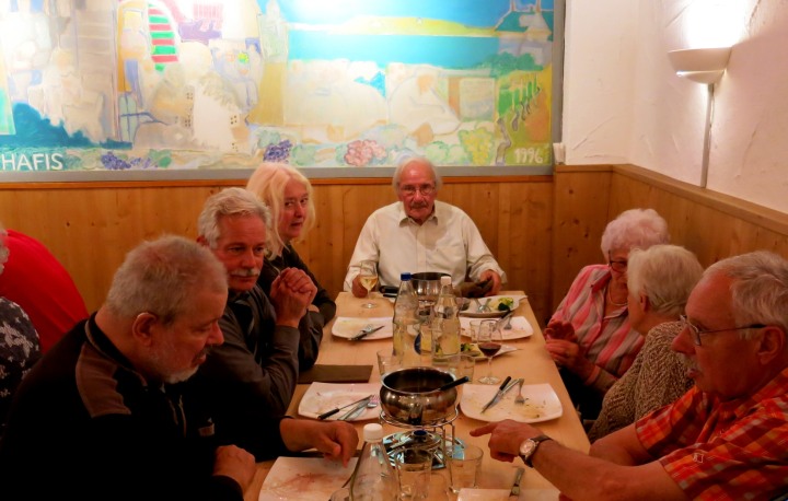 Gemütliches Mittagessen mit einem Fondue vigneronne und einem Dessert nach