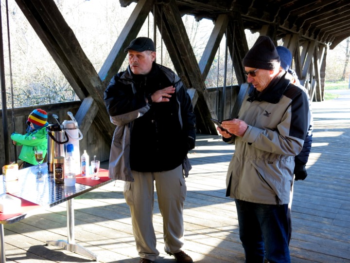 Weiter führte der Weg, alles der Birs entlang zu unserem Endziel, der Clubhütte des FCP. Auf dem gedeckten Aussenbereich, erwartete uns ein weiterer Aperitif. Für diesen Apéro und das folgende Mittagessen, waren Peter Bammert und