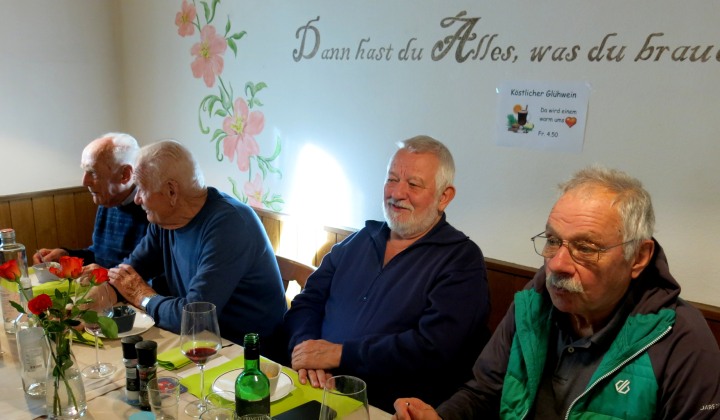 Traditionsgemäss fanden sich die Turner der Männerriege -bei der Bushaltestelle Bedrettostrasse- in Bottmingen ein. Dieses Jahr erfolgte der Spaziergang über das Bruderholz bei kühlem aber trockenem Wetter. Schon bald erreichten wir die bekannte letzte Abzweigung zum Lettenstübli, und der mitgetragene Rucksack von Edi, öffnete sich in wunderbarer Weise. Es entpuppte sich ein Erfrischungs-Trunk, welcher den letzten Morgenmuffel ansprechen und verführen konnte. Erfrischt und mit leicht aufkommenden Appetit, marschierte wir gemeinsam unterhaltend in Richtung “Lettenstübli“. In der Gaststube, mit dem liebevollen gedeckten Langtisch, konnten wir einige weitere anwesende direkt zu uns gestossenen Turnerkollegen, begrüssen.