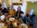 Wegen des nassen und garstigen Wetters, fuhren wir von Basel direkt und ohne Zwischenhalt, nach Schafis. Dort angelangt wurden wir von Frau Lisbeth Andrey und ihren Mitarbeitenden Frauen, herzlich empfangen. Und schon bald, wurden die herrlichen Weiss- und Rotweine von der hauseigenen Kelterei, serviert. Danach folgte natürlich das Menü –Treber-Wurst mit Kartoffel- und gemischter Salat. Die heisse Saucisson wurde durch die Chefin selbst, fachgerecht in Wursttranchen geschnitten, und an die hungrige Ausflugs-Gesellschaft, ausgeteilt. Es wurde still in der Kelterei-Stube, und alle waren mit dem Tafeln à discrétion des herrlichen Essens, beschäftigt. Abgerundet wurde das gute Essen mit einem Kaffee – Marc, und einem der unterschiedlich angebotenen Dessert.